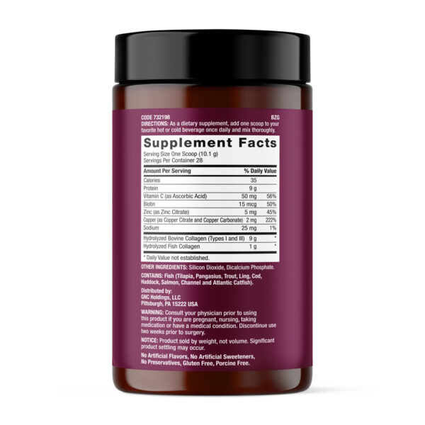 Colágeno hidrolizado (péptidos de colágeno) vitamina c. biotina, zinc, cobre
