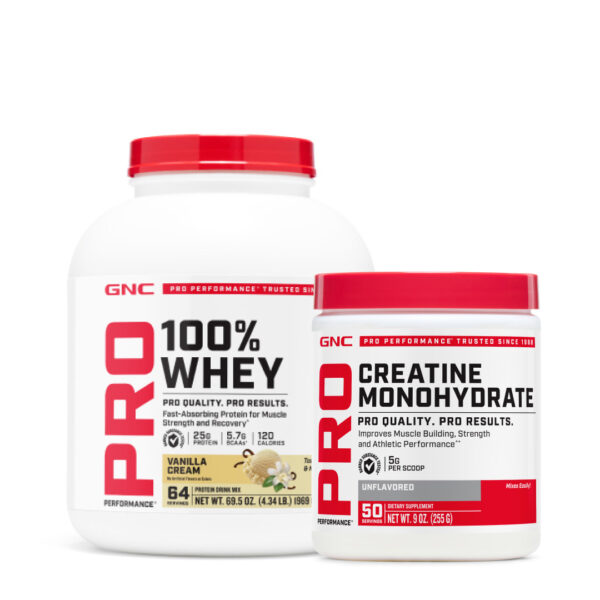 GNC Pro Performance 100% Whey, es un suplemento proteico en polvo de sabor (Vainila Cream o Chocolate Supreme), diseñado para apoyar la recuperación muscular y el crecimiento muscular, antes, durante o después de el ejercicio. Cada porción contiene 24gr de proteína de suero de leche de alta calidad, junto con los 9 aminoácidos esenciales.