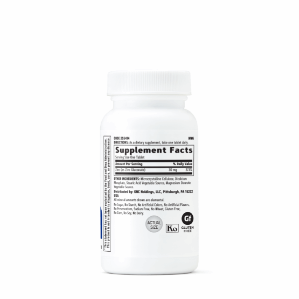 GNC Zinc 30mg, es un complemento alimenticio, diseñado para apoyar el sistema inmune, la función celular y la formación de tejidos.